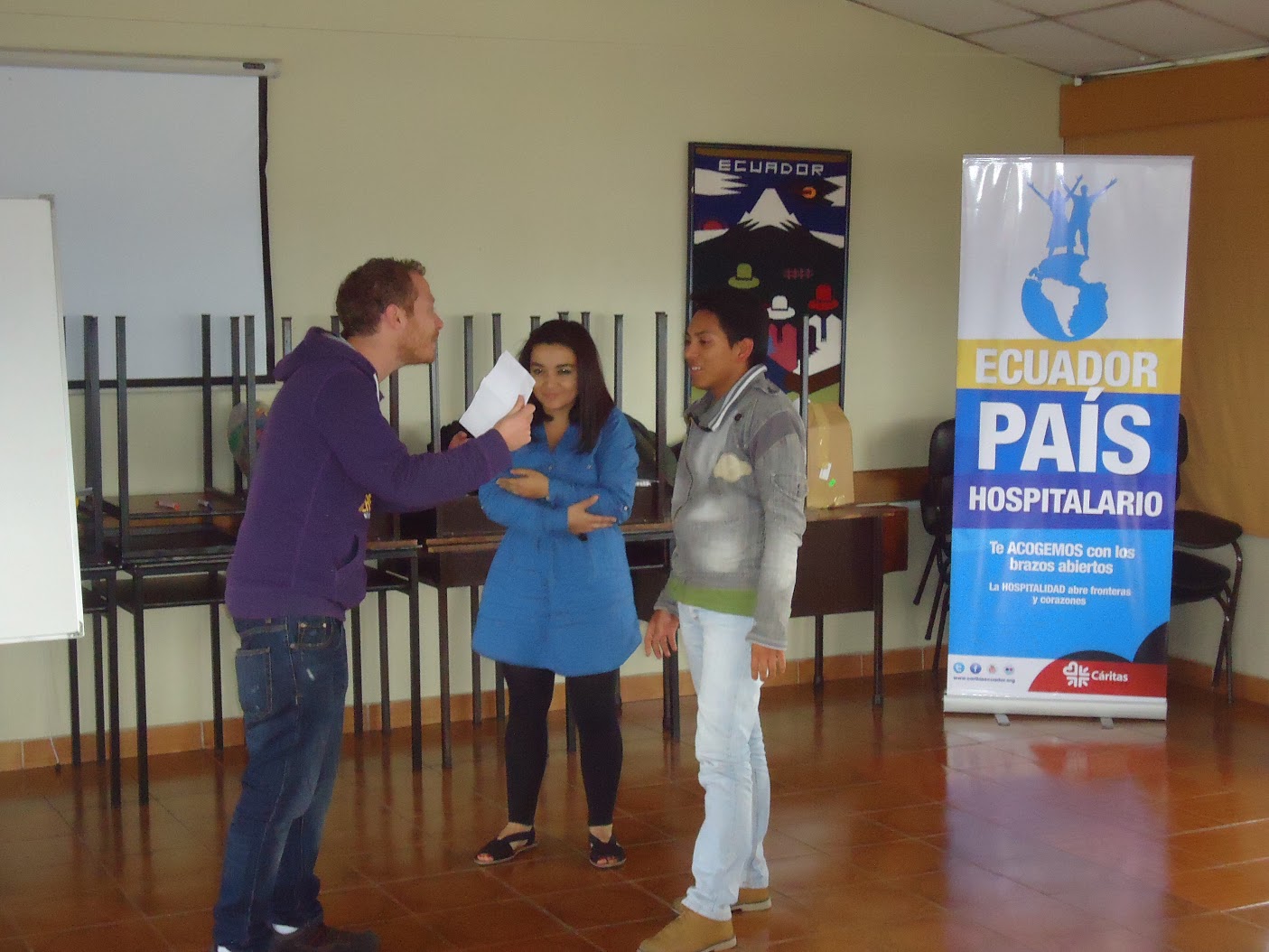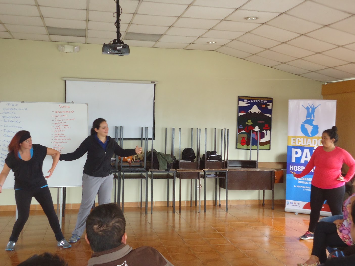 La primera experiencia de sensibilización se vivió en el Barrio Jaime Roldós, uno de las comunidades con mayor incidencia de población refugiada, de migración interna y de pobreza en la ciudad de Quito, capital del Ecuador. Con el motivo de la conmemoración del Día Internacional del Refugiado donde participaron niños, niñas, adolescentes, jóvenes y adultos, en dos diferentes funciones, donde se obtuvieron excelentes resultados.